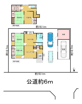 車庫・物置有 駐車場3〜4台 南道路 閑静な住宅地